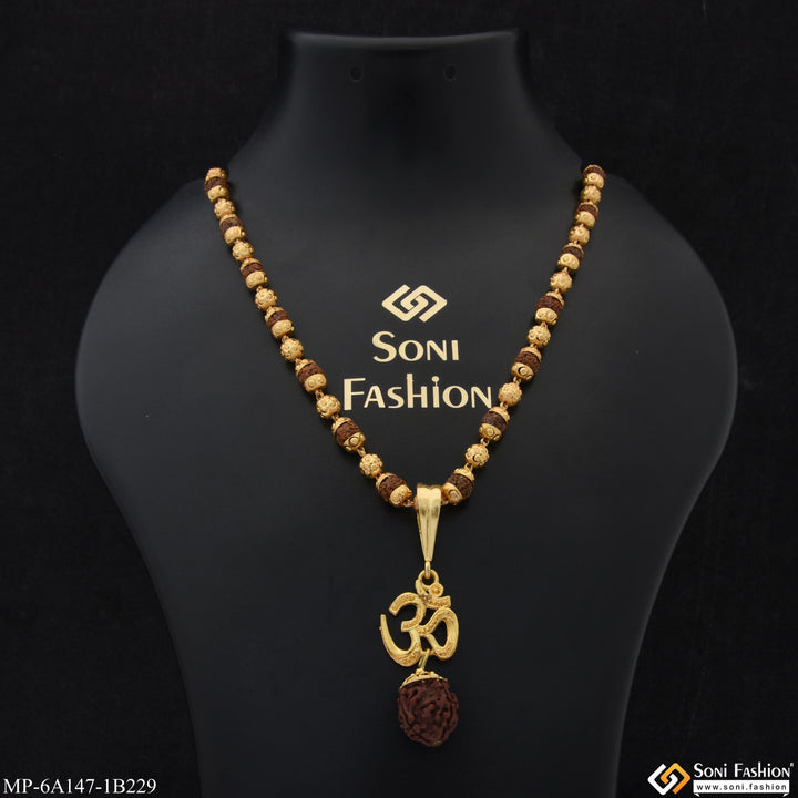 Delicate Design Gold Plated Rudraksha Mala with Pendant for Men (MP-A147-B229)