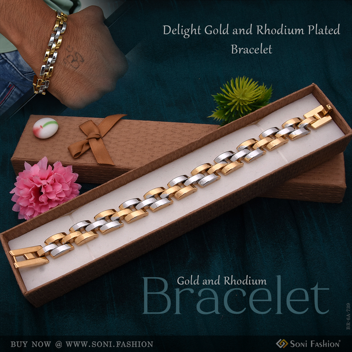 Delight Gold and Rhodium Plated Bracelet for Men - Style A739