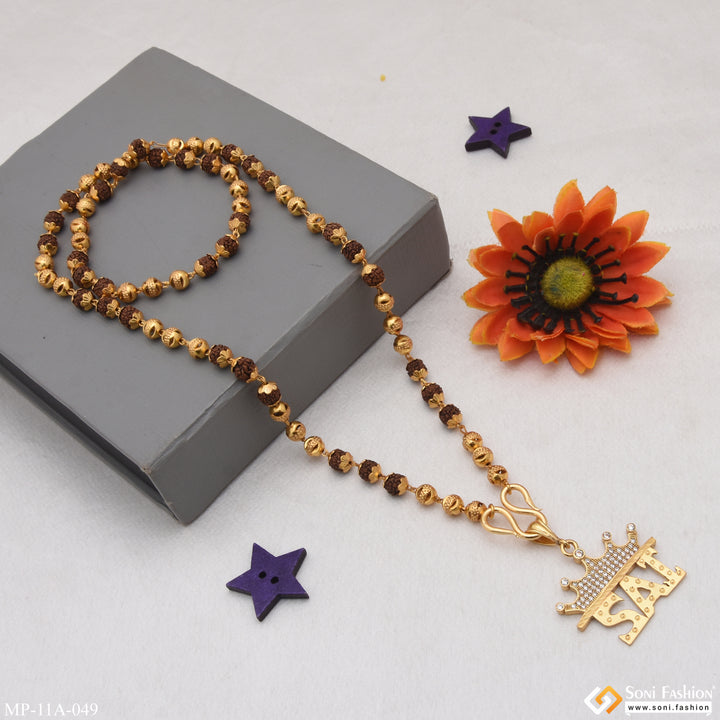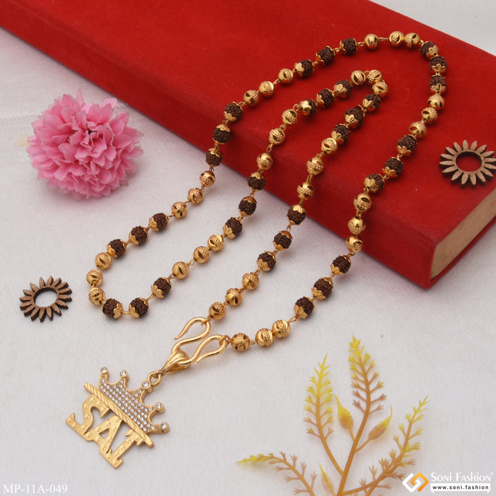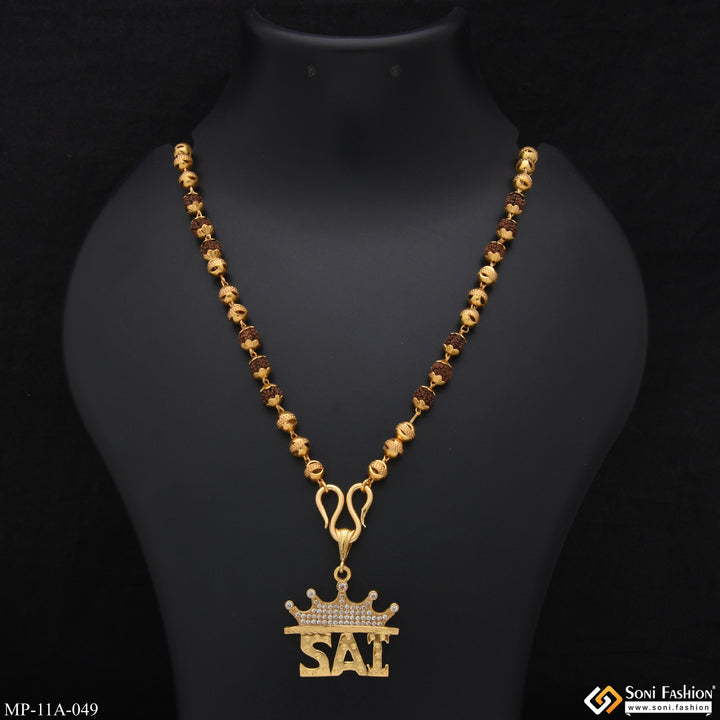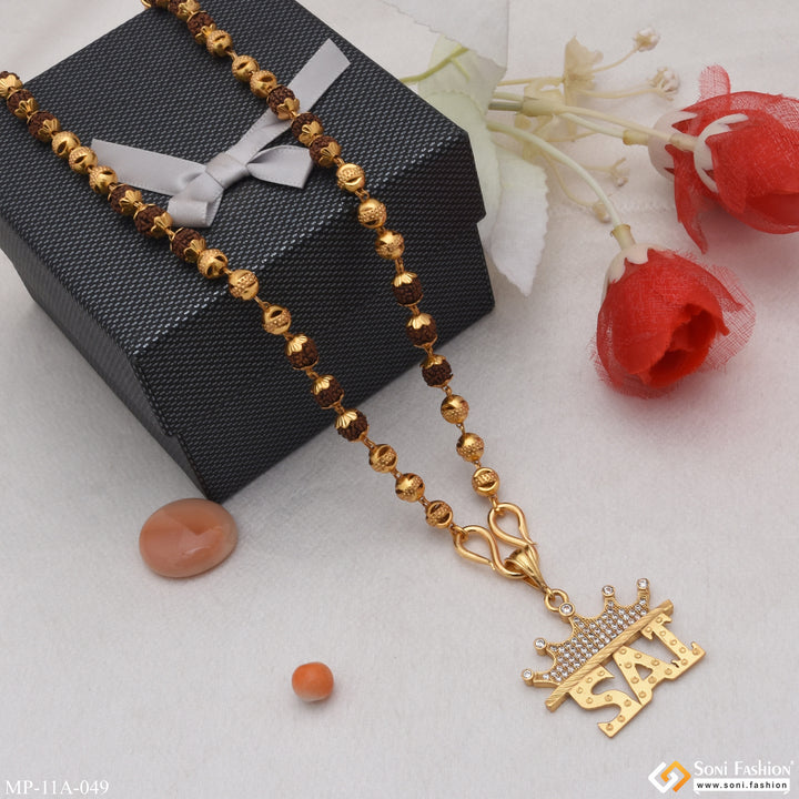 Sai With Diamond Gold Plated Rudraksha Mala With Pendant For Men - Style A049