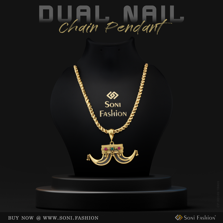 This 18k gold plated pendant with chain for men boasts a unique and funky dual design. The textured, shining, and royal Rajwadi accents make this piece stand out with a touch of hip hop flair. Available in white, pink, green, and golden chain options, each with intricate filigree details and a sparkling diamond. Crafted with brass, this pendant is a true statement piece.