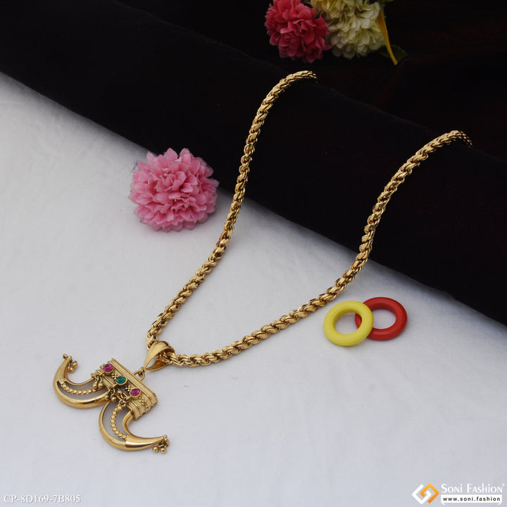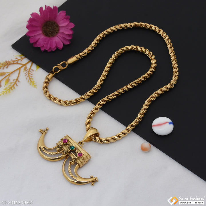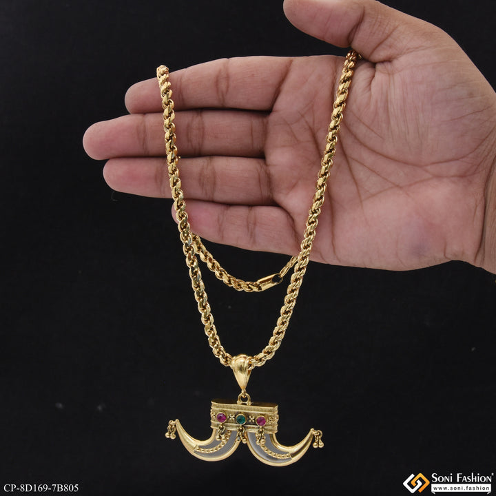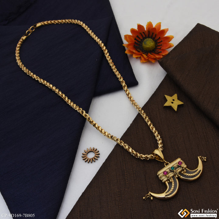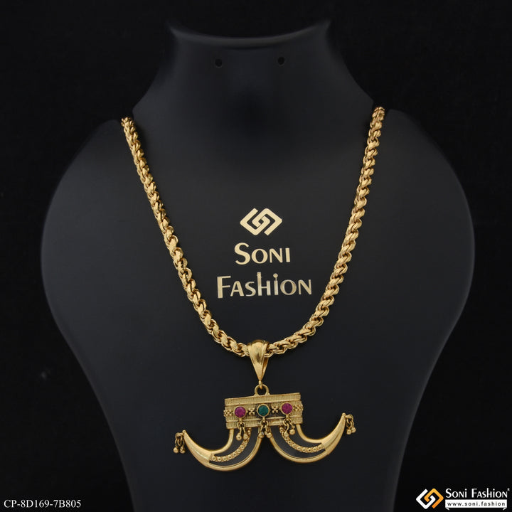 This 18k gold plated pendant with chain for men boasts a unique and funky dual design. The textured, shining, and royal Rajwadi accents make this piece stand out with a touch...