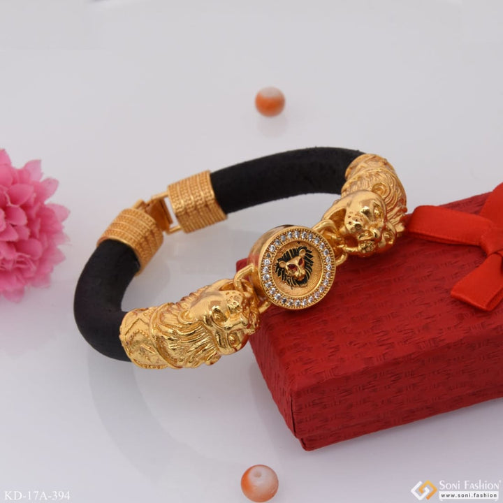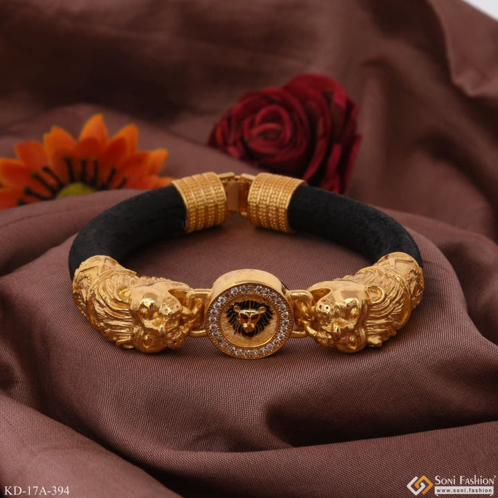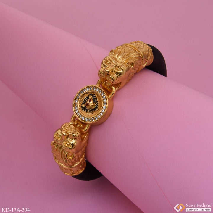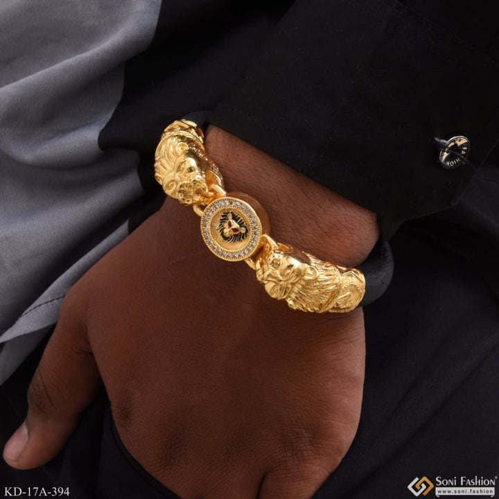 Dual Lion Face with Diamond Eye-Catching Design Gold Plated Genda Kada - Style A394