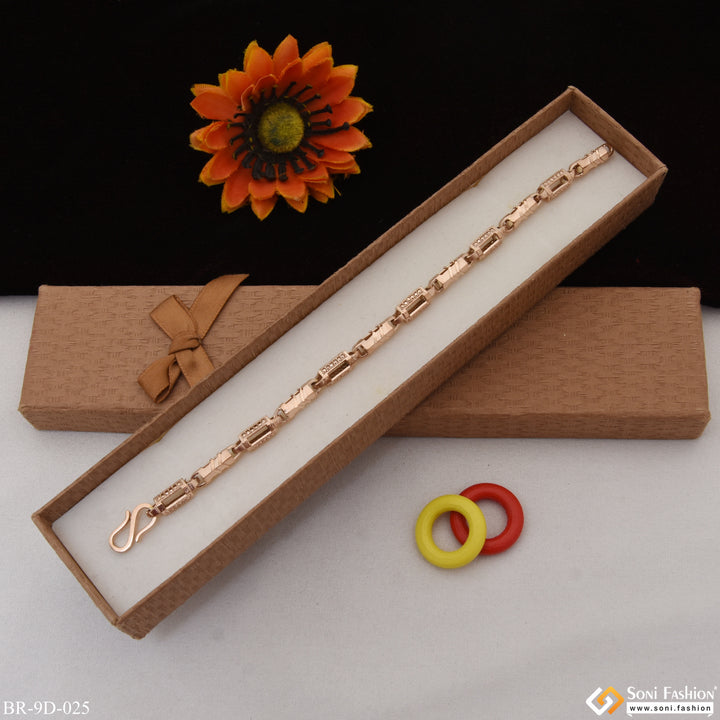 Etched Design Gorgeous Design Rose Gold Color Bracelet for Men - Style D025