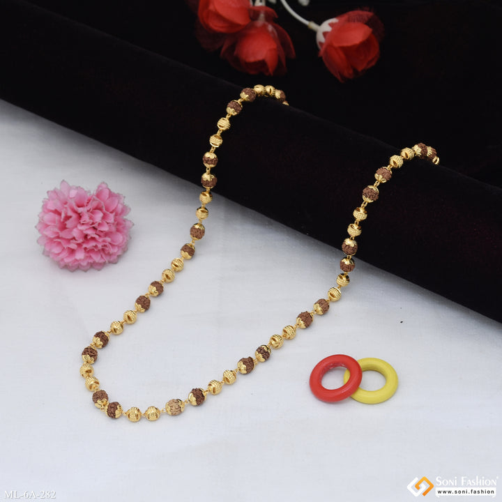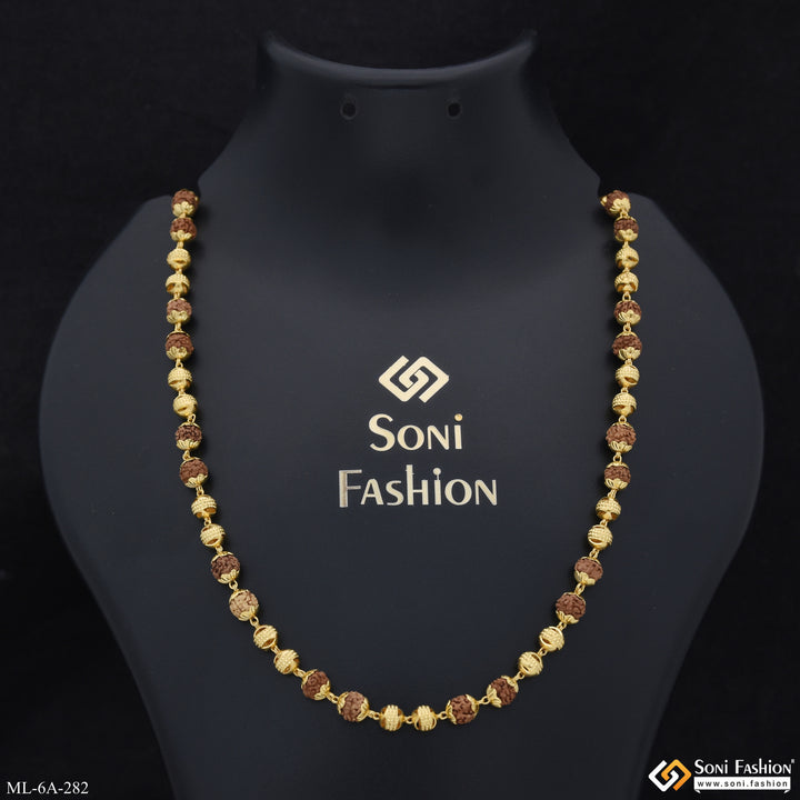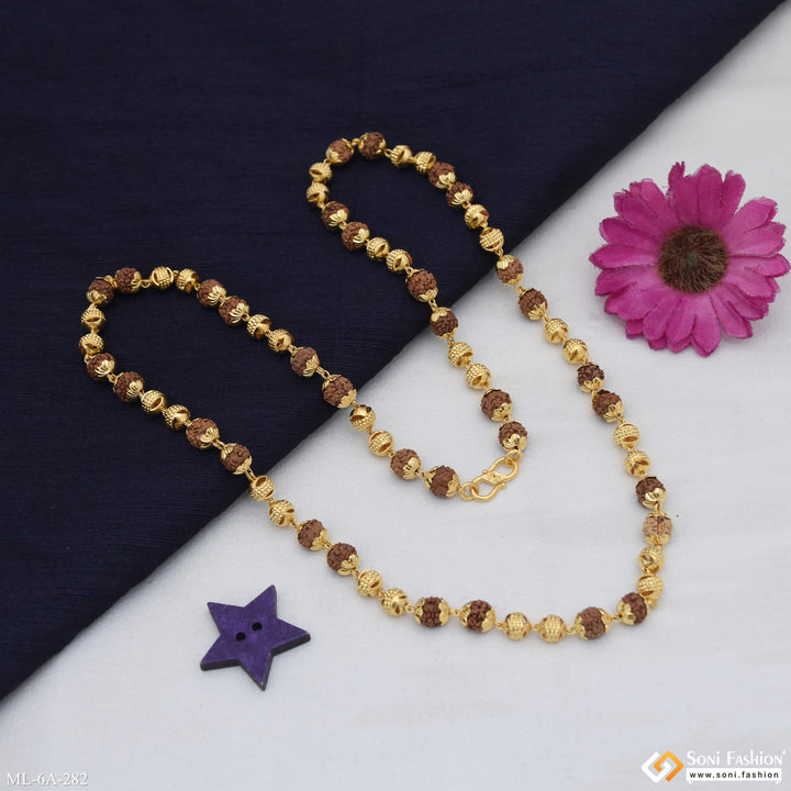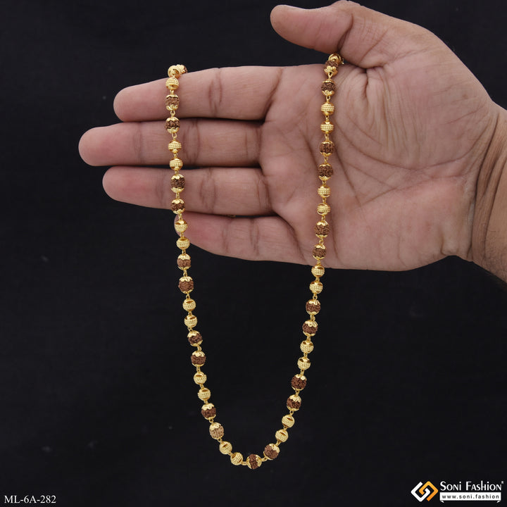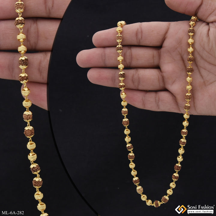 Etched Design High-Quality Gold Plated Rudraksha Mala for Men - Style A282