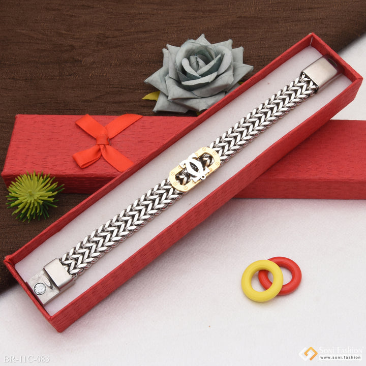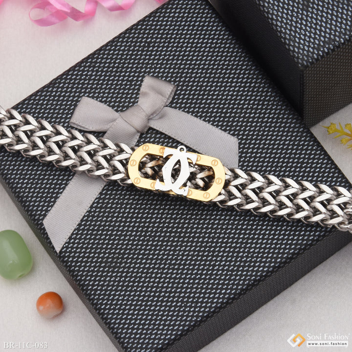 Etched Design High-Quality Golden & Silver Color Bracelet for Men - Style C083