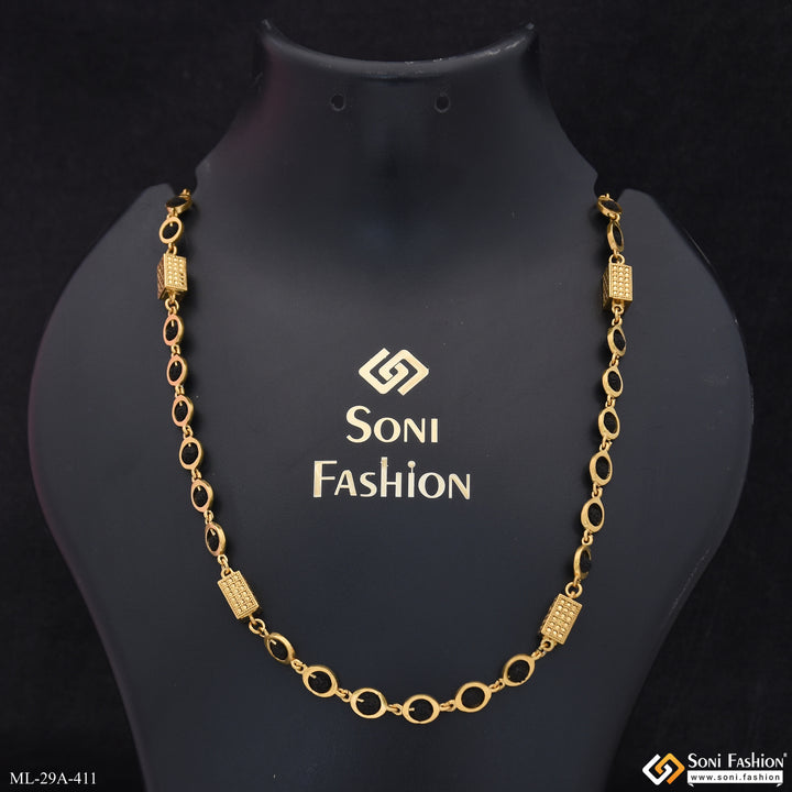 Expertly crafted for men, the Excellent Design 18k Gold Plated Rudraksha Mala shines with religious significance. Made with authentic Rudraksha beads, this golden mala features an elegant oval design and is plated with 18K gold for a royal touch. Perfect for spiritual and fashion purposes.