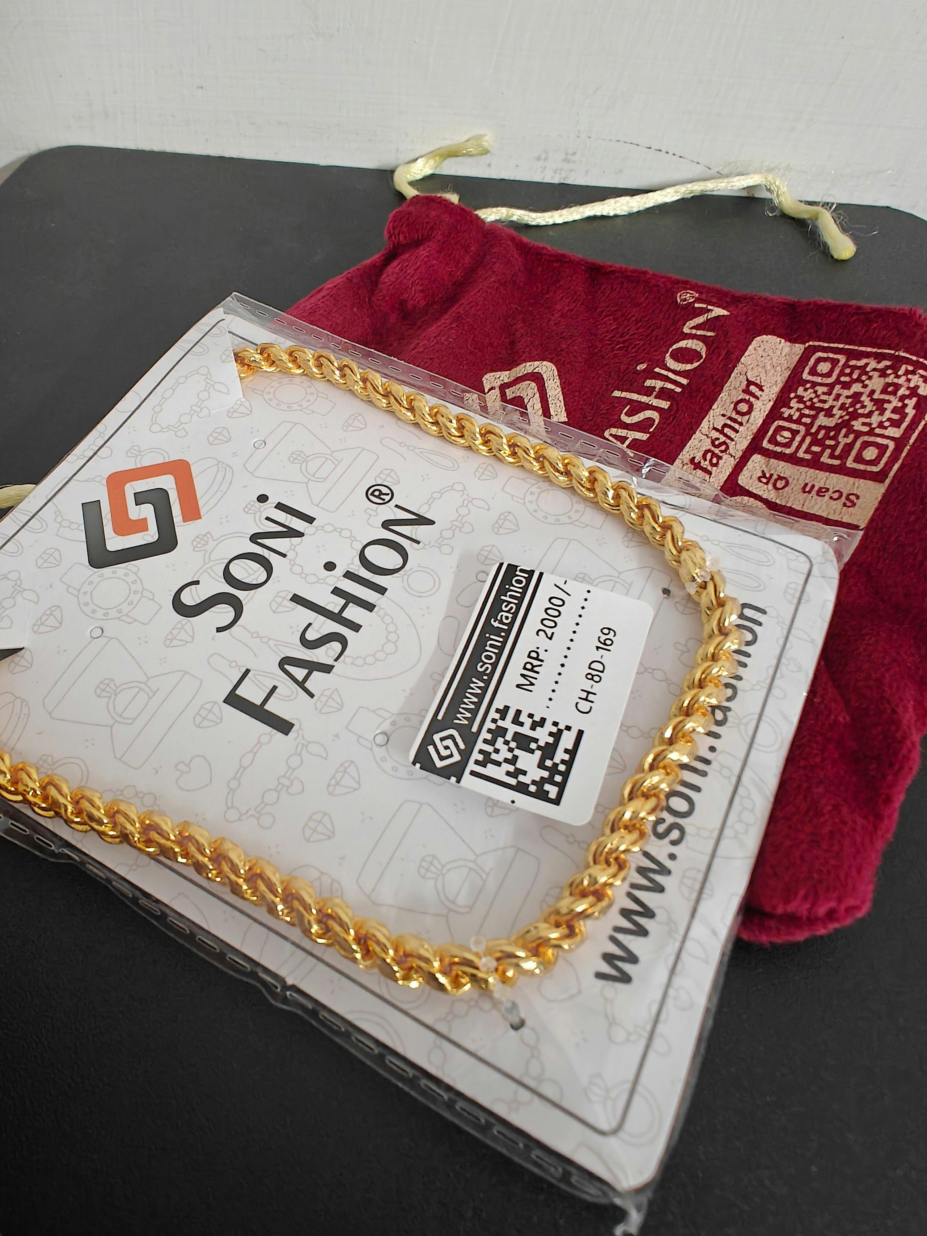 This Excellent Design Fancy Design High-Quality Gold Plated Chain is perfect for the stylish man. Made of textured brass with a shining and royal look, this 22 inch chain features a...