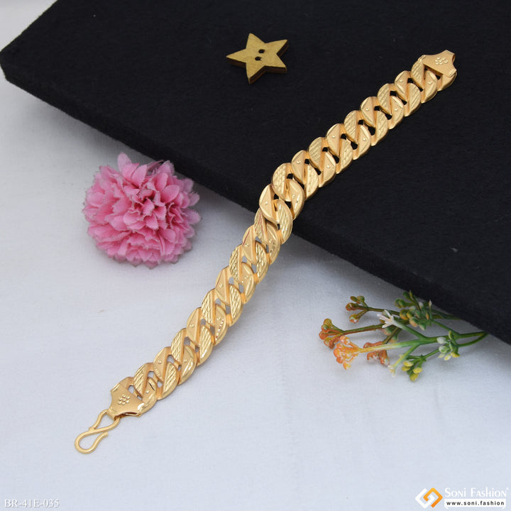 Experience royalty and elegance with our Excellent Design Gorgeous Design Rose Gold Color Bracelet. This textured and shining bracelet is designed for men, blending hip hop style with a hint of luxury. Made with hid_reg_plating, this royal piece features a sparkling diamond on a brass base. Elevate your style with this Bracelet-Regular.
