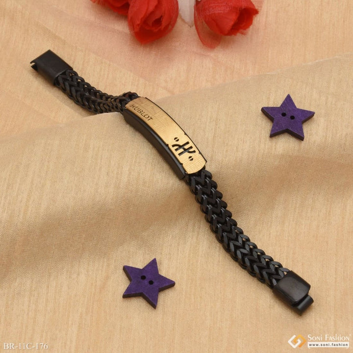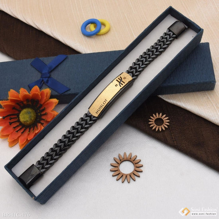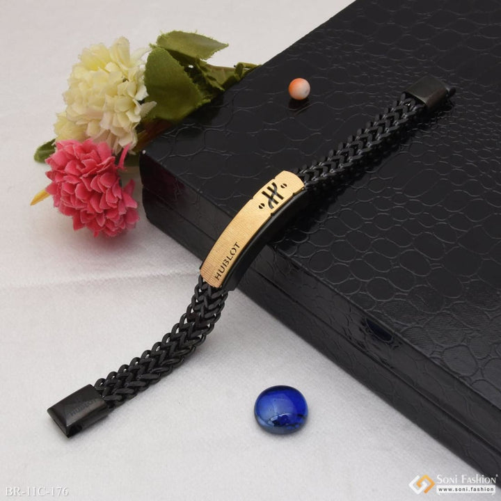 Exceptional Design High-Quality Black & Golden Color Bracelet for Men - Style C176