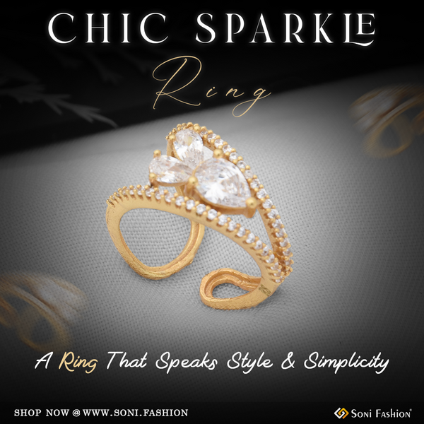Experience luxury with our Exclusive Design with Diamond Chic Design Gold Plated Ring for Ladies. This royal and stylish ring features a textured and shining golden finish, accented with a charming...