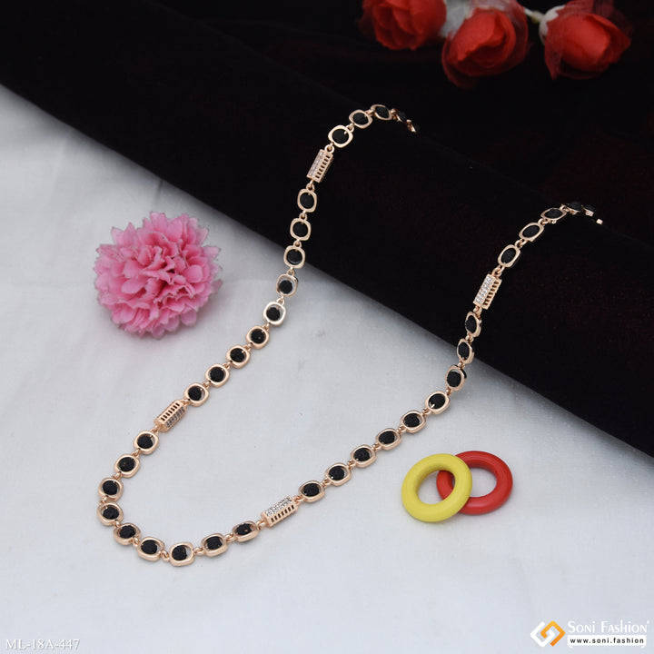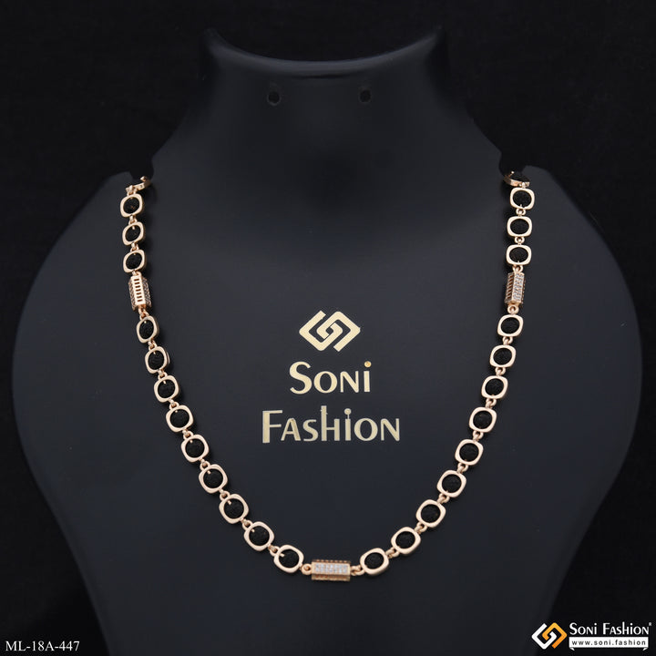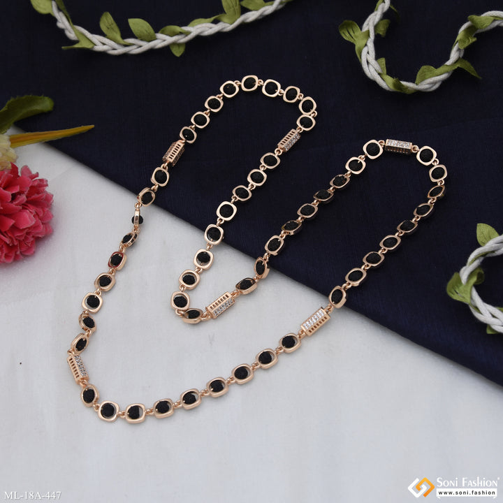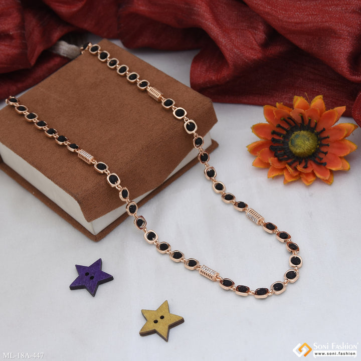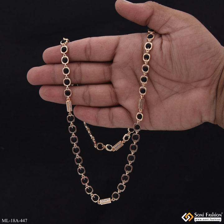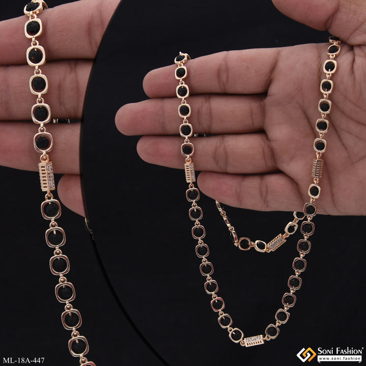 This extraordinary rose gold-colored Rudraksha mala combines traditional religious significance with modern style. Crafted from brass with a black mala base, it features plain yet elegant beads enhanced with a diamond-like shine. Its durable plating ensures long-lasting brilliance, making it a perfect accessory for men seeking both spiritual connection and fashionable appeal.