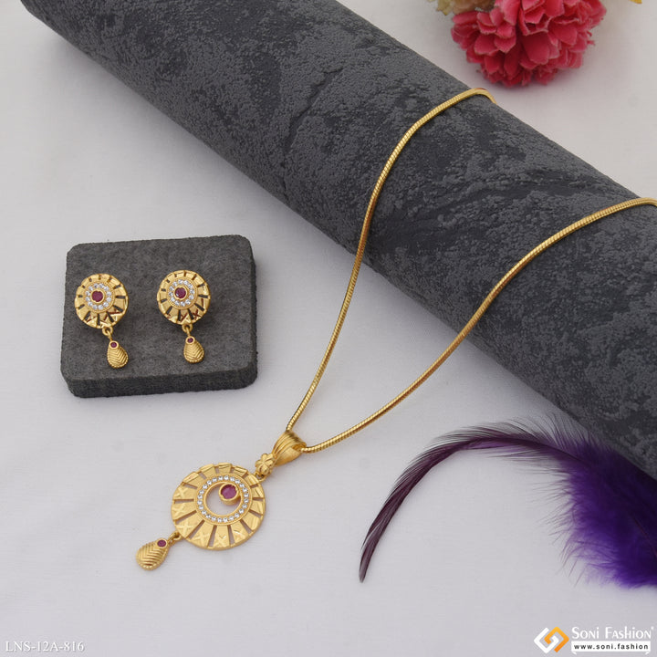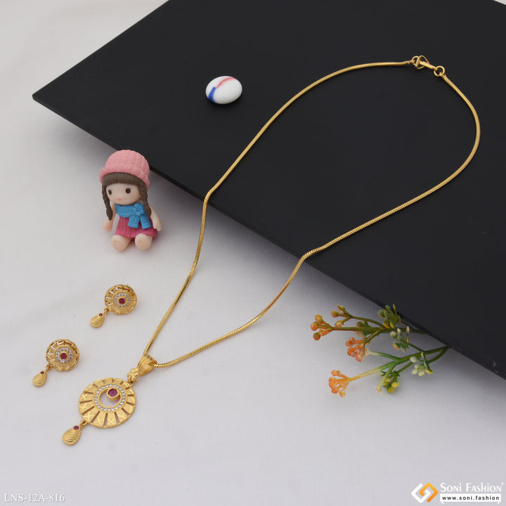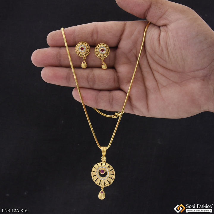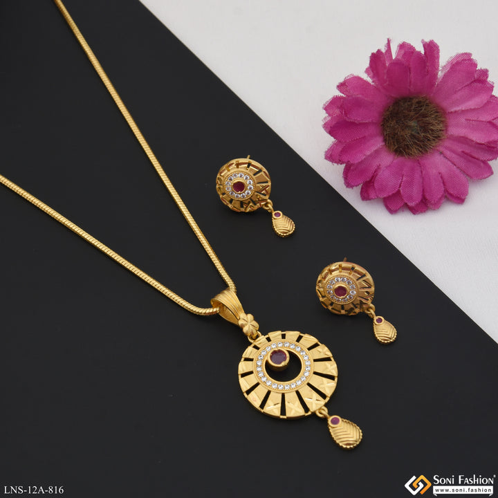 This Eye-Catching Design Gold Plated Necklace Set for Ladies features a shining, pink necklace set that follows the latest trend. Its Hidden Reg Plating gives it a timeless golden shine while...
