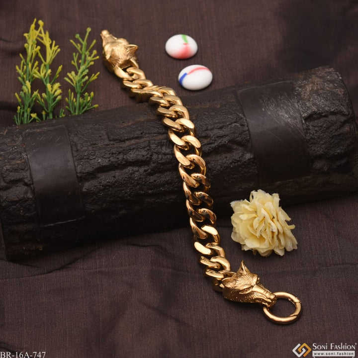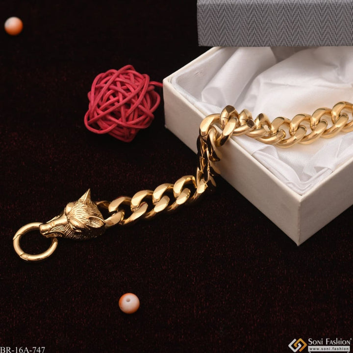 Fox Face Very High Quality Golden Stainless Steel Bracelet - Gold Plated - Style A747