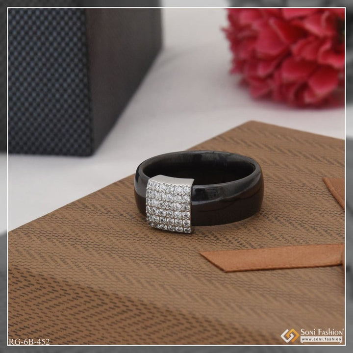 Fashionable Design With Diamond Latest Design Black Color Ring For Men - Style B452
