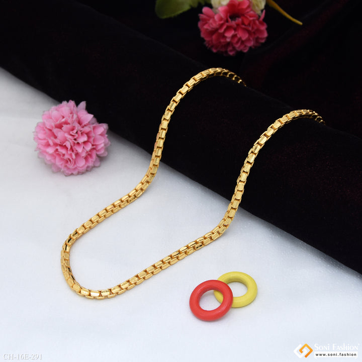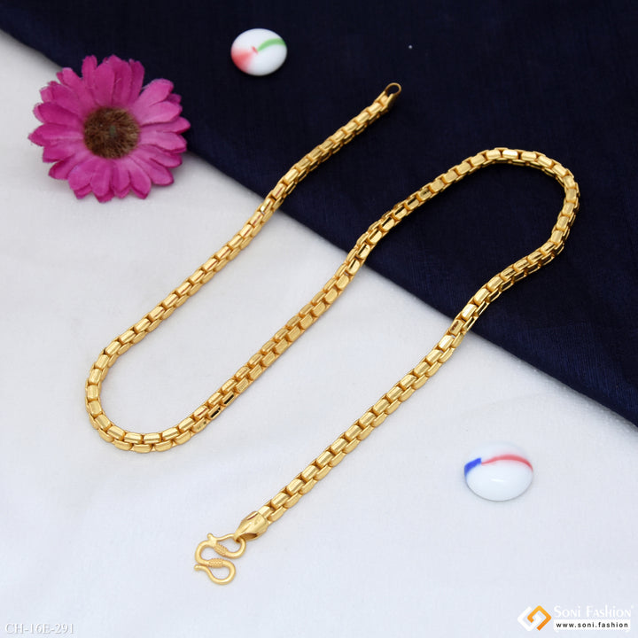 This 20-inch finely detailed gold-plated chain for men combines timeless style with durable brass construction. Its golden shine and precise plating ensure a lasting finish, making it a versatile accessory for everyday wear or special occasions. Perfectly balanced to enhance any outfit with subtle elegance.