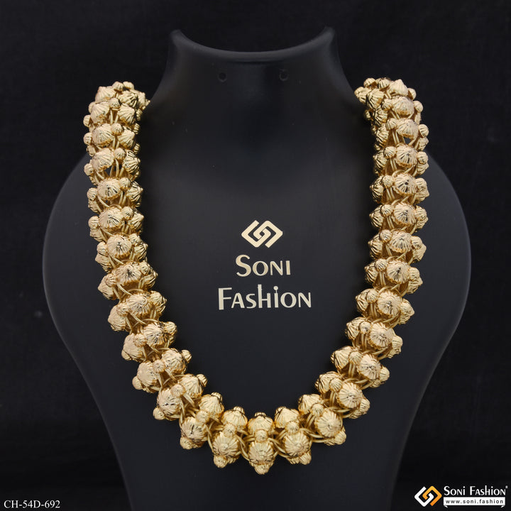 Discover the luxurious and intricate style of our Finely Detailed Design Gold Plated Rajwadi Chain for Men. Crafted with shining brass, the 25 inch chain features a stunning filigree design and hidden regal plating for an elegant touch. Elevate your look with this statement piece.