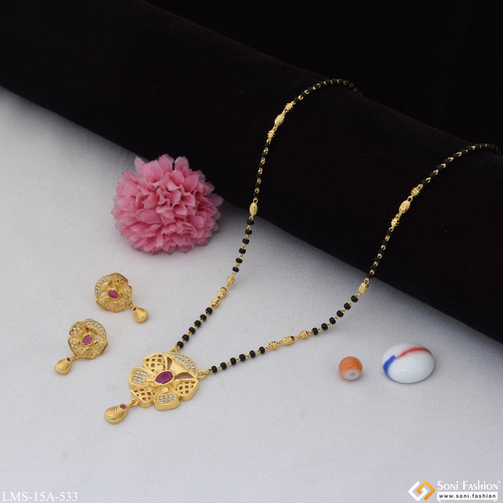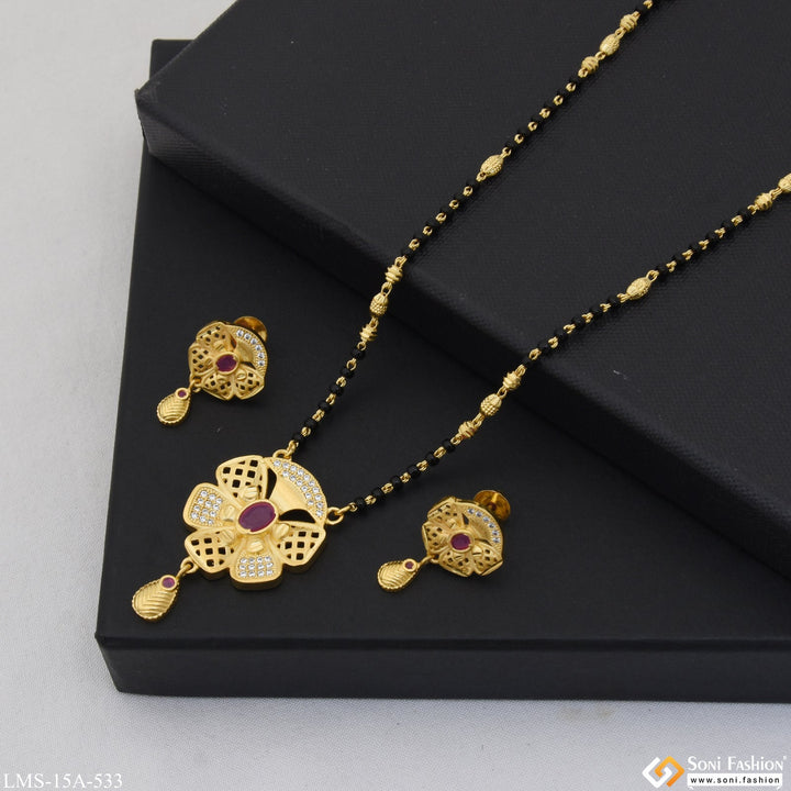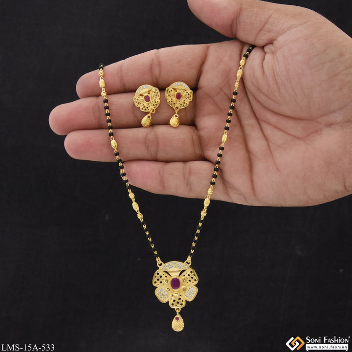 Finely Detailed Gold Plated Mangalsutra Set for Women - Style A533
