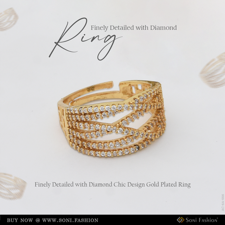 Discover the ultimate in sophistication and elegance with our Finely Detailed Gold Plated Ring for Ladies. The textured design adds a touch of luxury, while the diamond accents bring a hint of sparkle. Made with high-quality brass and featuring a hidden regal plating, this ring is crafted to impress the most discerning of tastes. Upgrade your jewelry collection with this latest trend that will elevate any outfit.