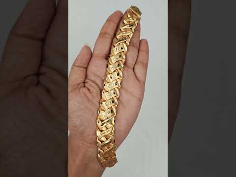 Elevate your style with our Glamorous Design Gold Plated Pokal Bracelet for Men. Made with shining, royal brass material, this bracelet features a matt, hollow design with intricate filigree details. Enjoy...