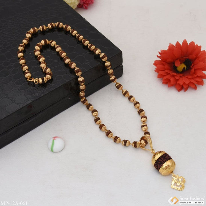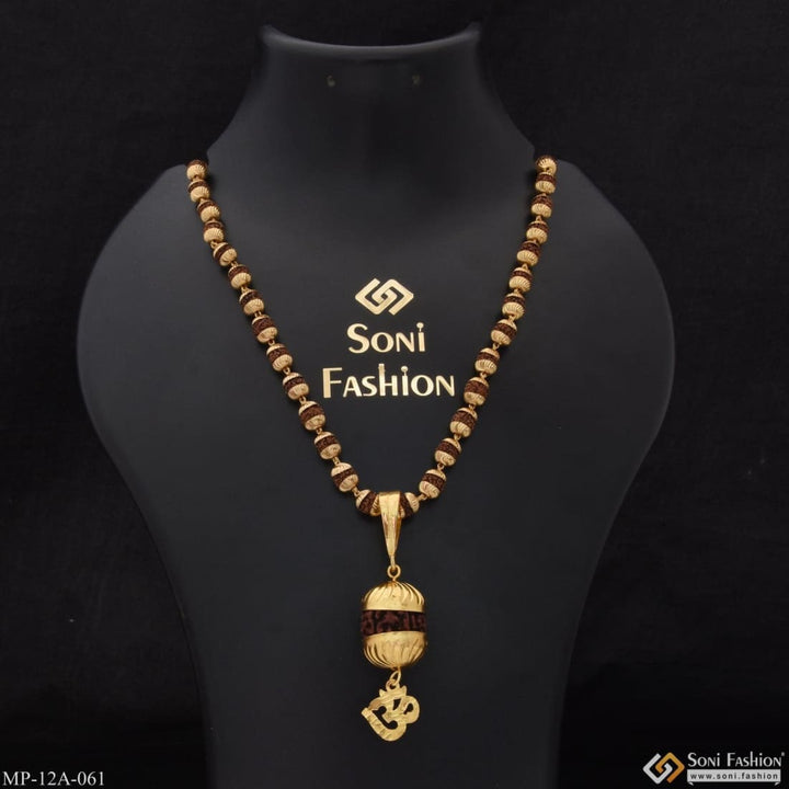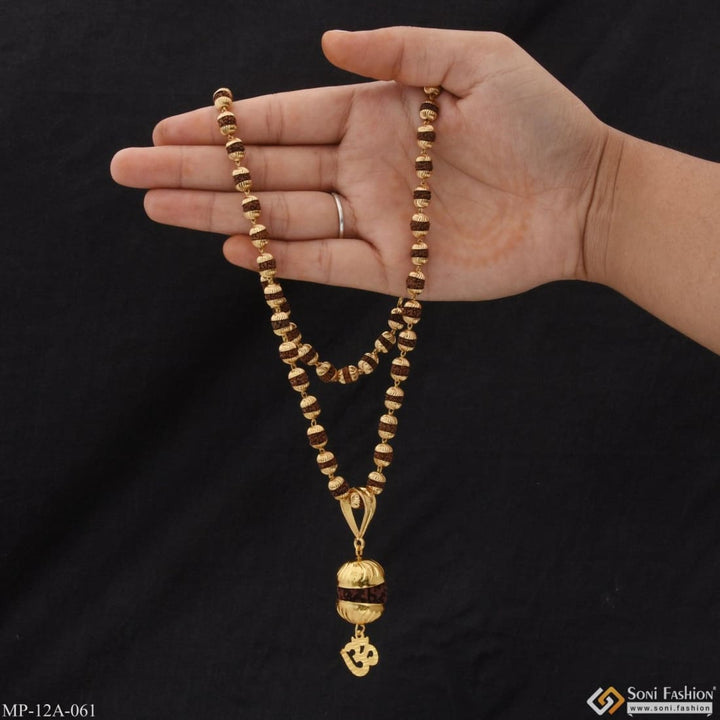 Om Glamorous Design Gold Plated Rudraksha Mala With Pendant For Men - Style A061