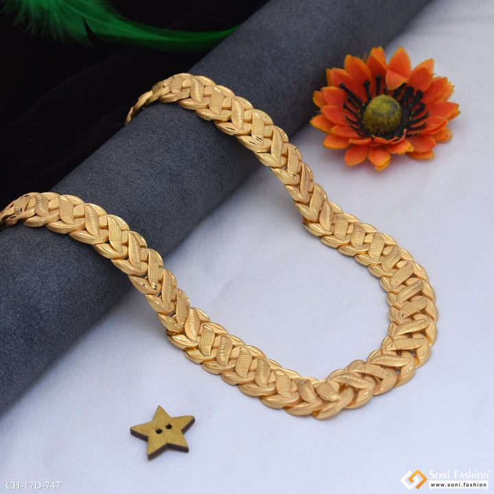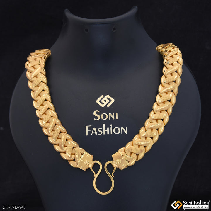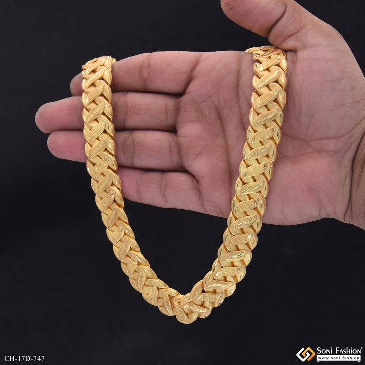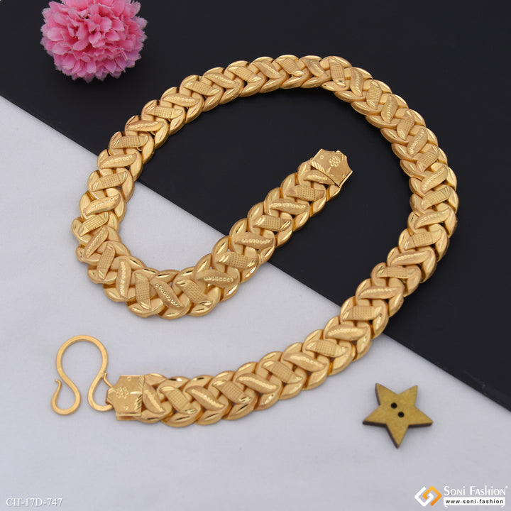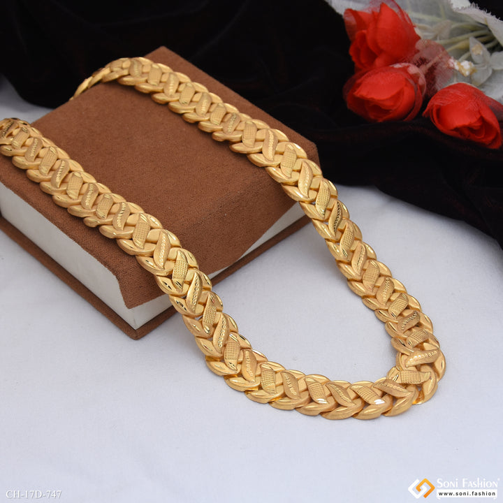 This Glittering Design Gold Plated Pokal Chain for Men is a shining accessory that adds style and class to any outfit. Made of brass, the 22 inch chain features a stunning filigree design and is coated with high-quality, matt, and hollow chain for a long-lasting and elegant finish.