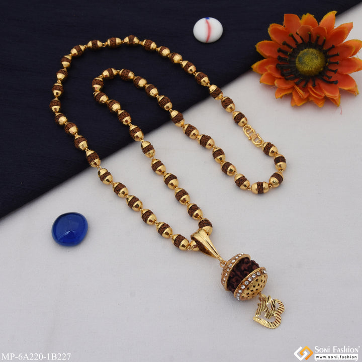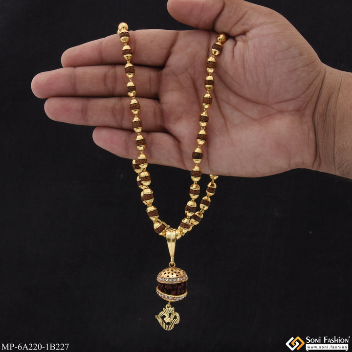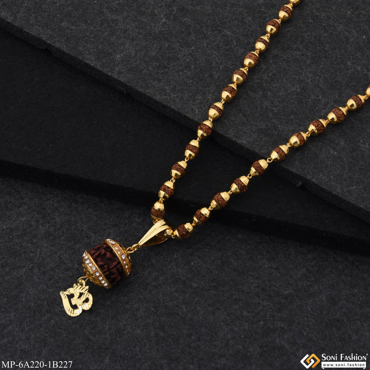 Glittering Design Gold Plated Rudraksha Mala with Pendant for Men (MP-A220-B227)