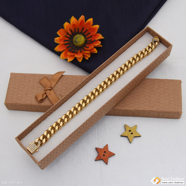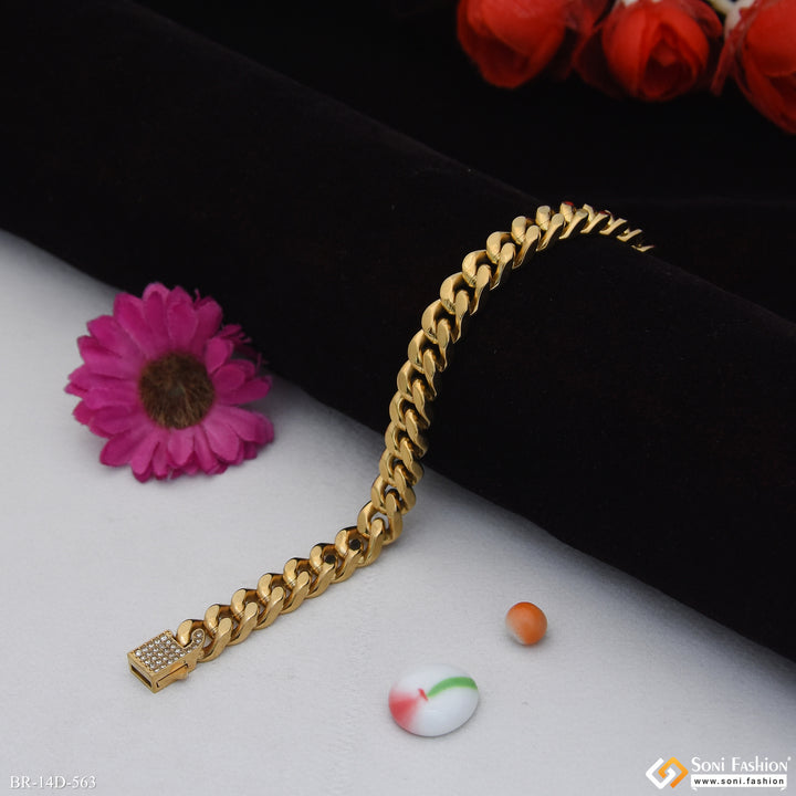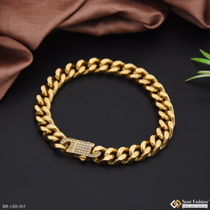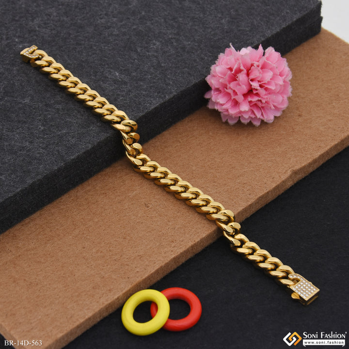 Golden Color Stainless Steel Cuban Link Bracelet for Men - Style D563