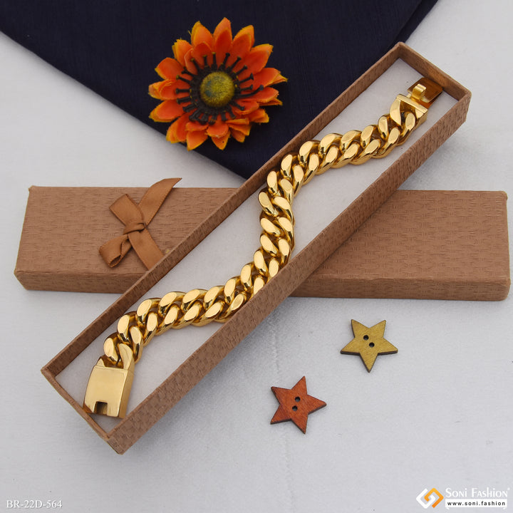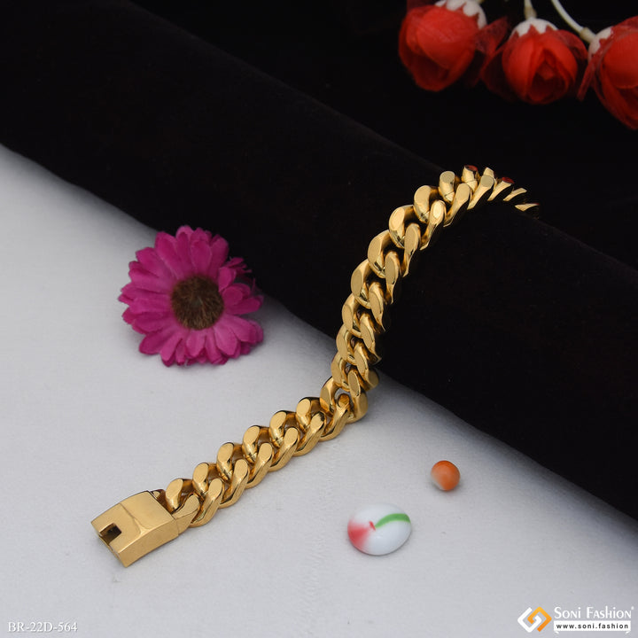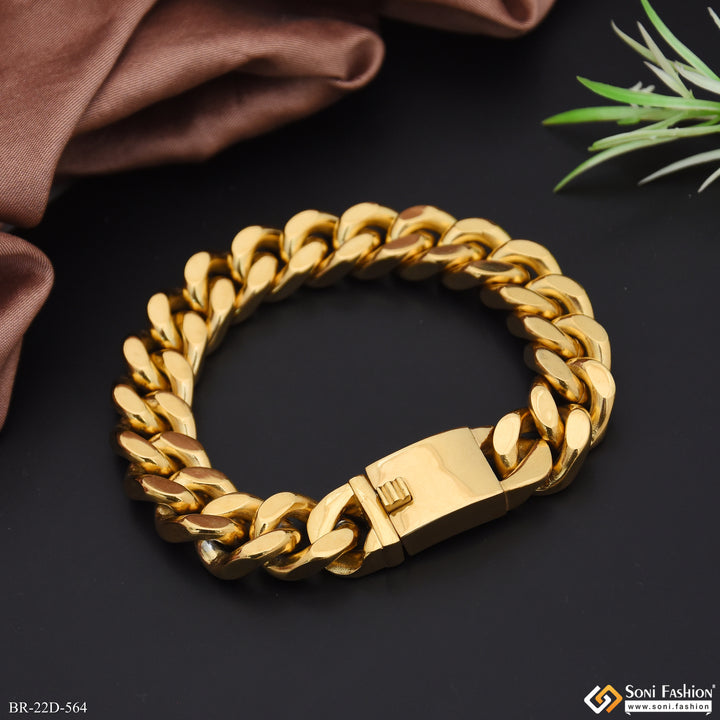 Golden Color Stainless Steel Cuban Link Bracelet for Men - Style D564