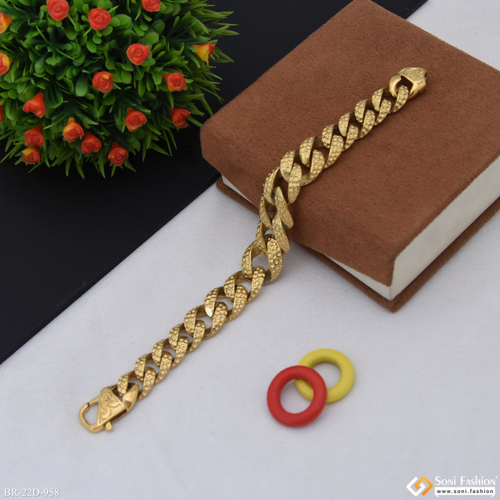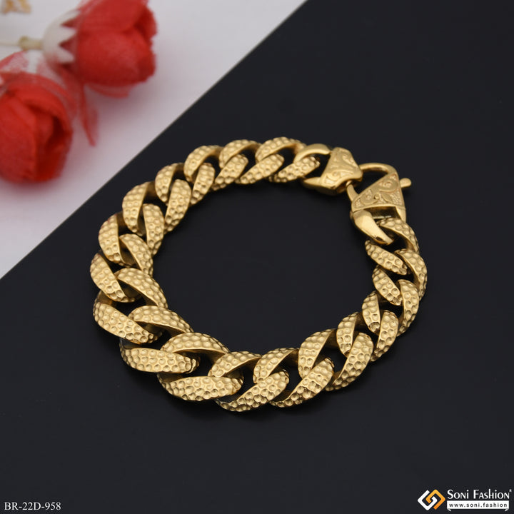 Golden Color Stainless Steel Cuban Link Bracelet - Style D958