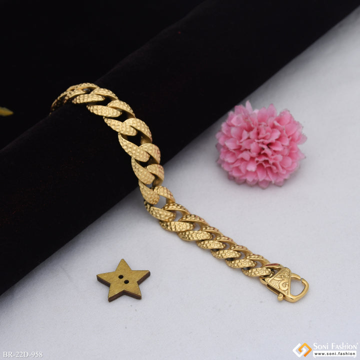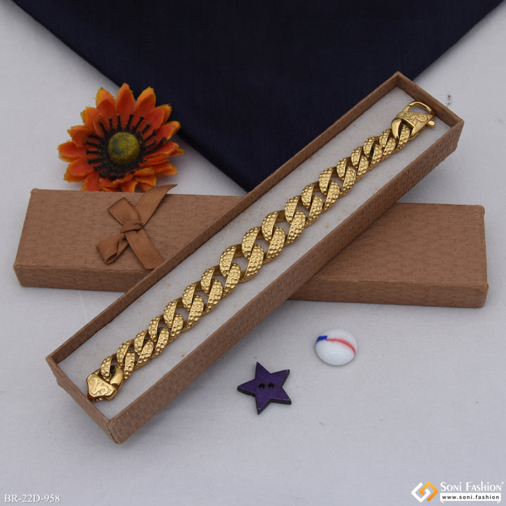 Elevate your style with this Golden Color Stainless Steel Cuban Link Bracelet. Its shining finish adds a sleek hip hop vibe, while the durable stainless steel with HID_REG plating ensures long-lasting wear and shine. Perfect for everyday use or special occasions, this regular-sized bracelet combines bold design with lasting quality.
