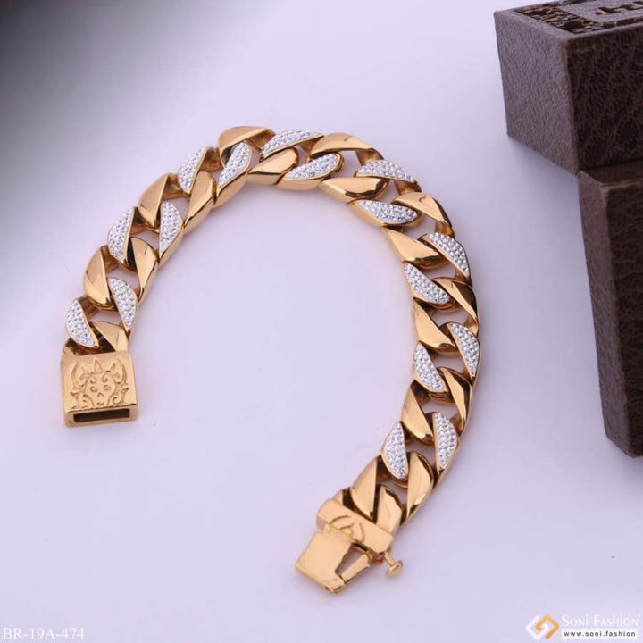 Big Golden Stainless Steel Superior Quality Bracelet With Diamonds - Style A474