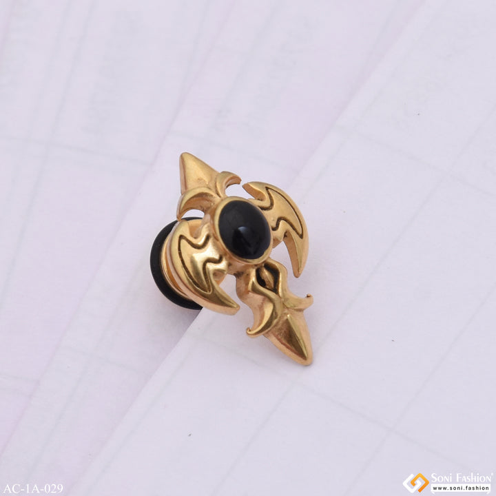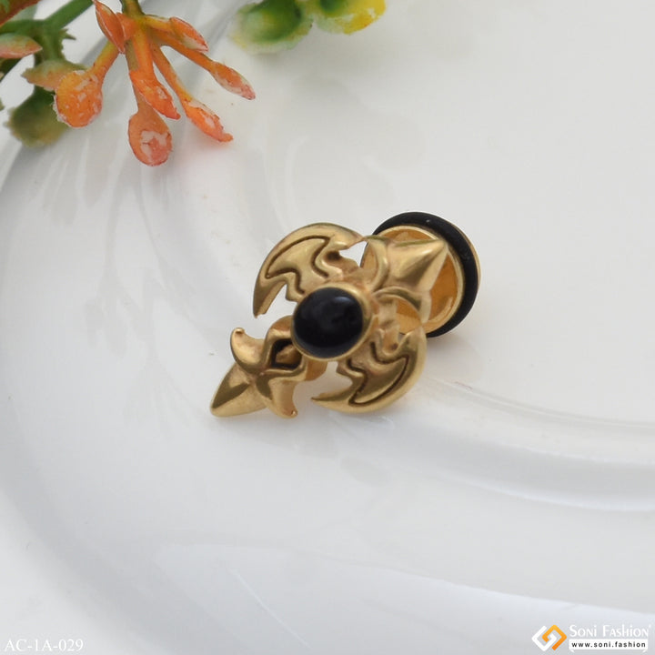 Expertly crafted with surgical steel, this textured cross stud earring for men exudes a shiny rock-like appearance. Its hip hop style paired with hidden plated golden accessories makes it a stylish and durable addition to any outfit. Feel confident and on-trend with this golden sword earring.