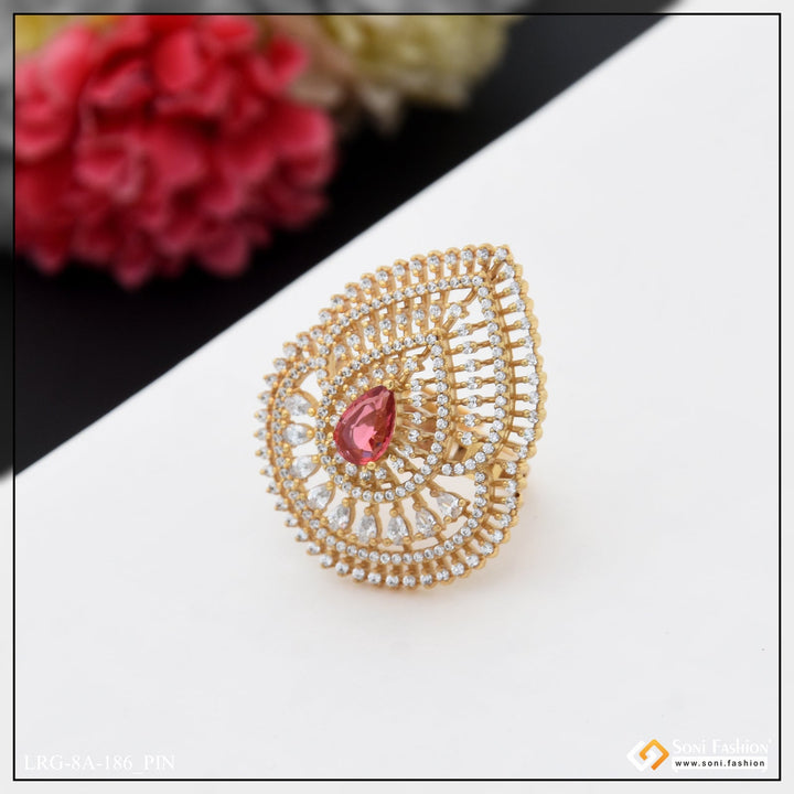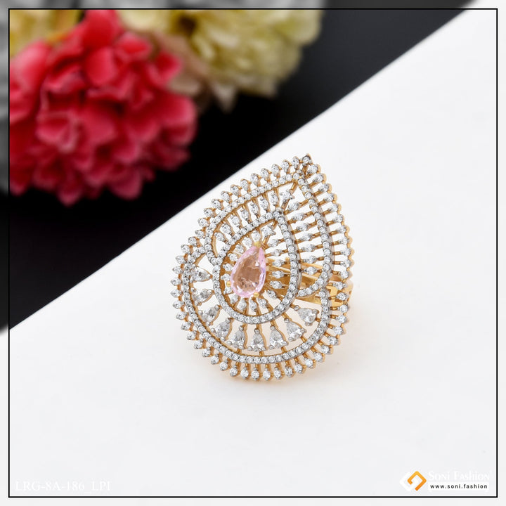 Graceful Design with Diamond Chic Design Gold Plated Ring for Ladies - Style A186