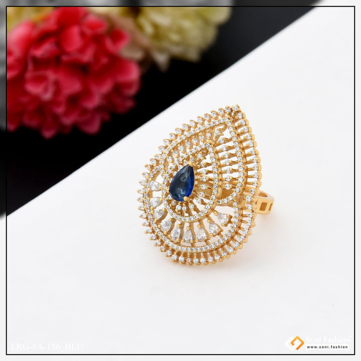 Graceful Design with Diamond Chic Design Gold Plated Ring for Ladies features a textured and shining exterior, perfect for adding a touch of royalty to any outfit. The multicolor and golden tones add a trendy, hip hop feel while the diamond accents and brass construction make for a high-quality, long-lasting accessory.
