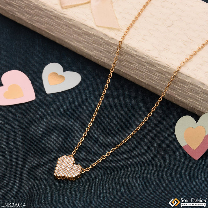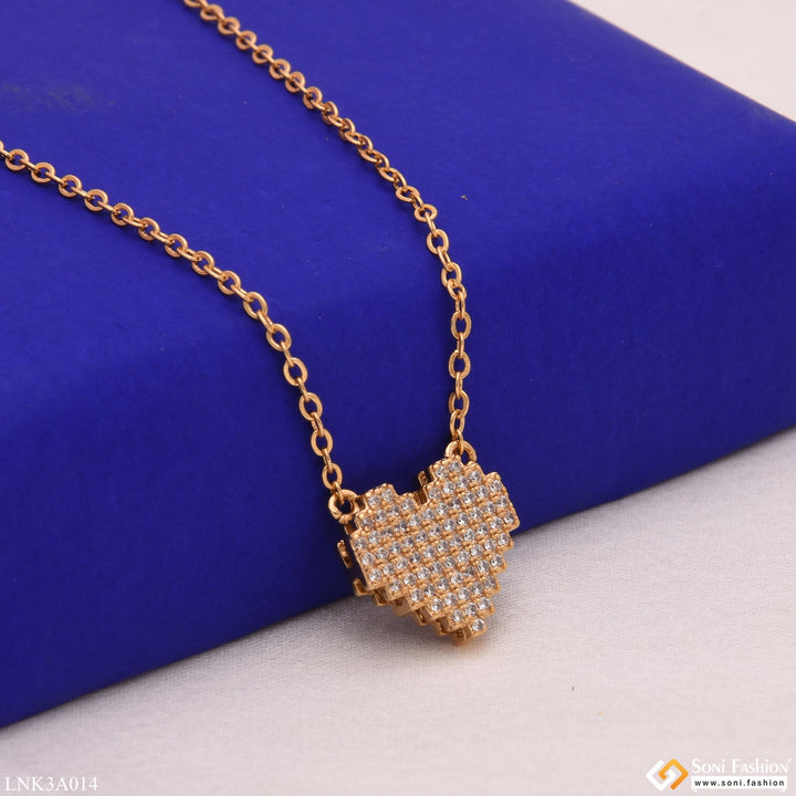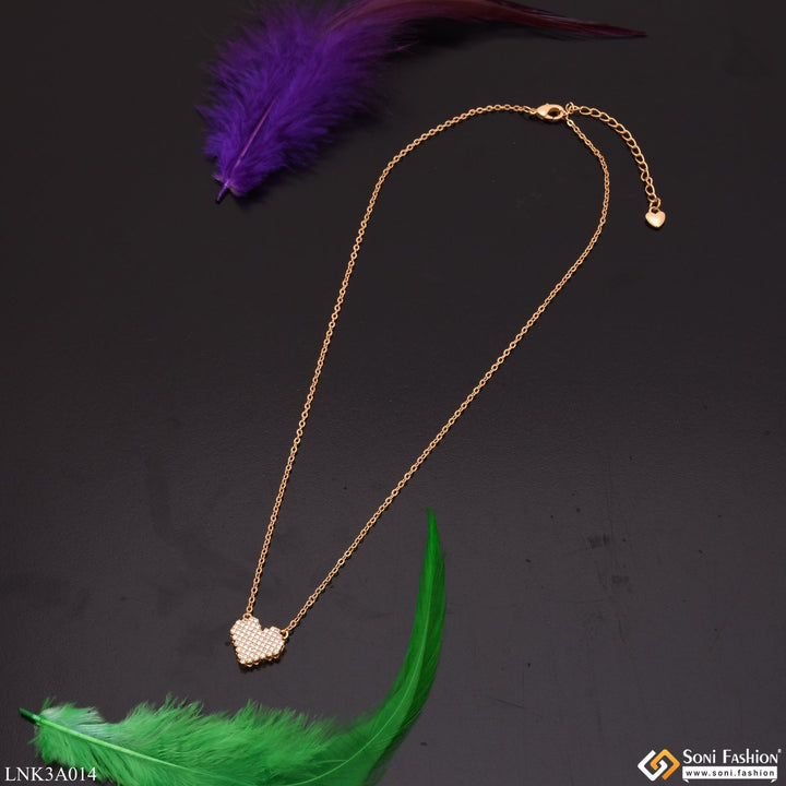 Heart With Diamond New Style Golden Color Necklace For Women - Style Lnka014