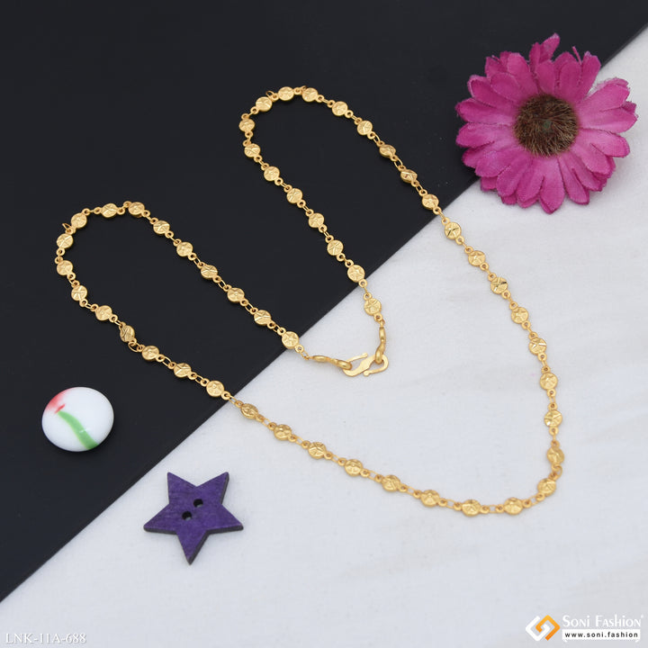 This elegant ladies' chain features a high-class gold plating on durable brass, combining style with long-lasting wear. Its refined design makes it a versatile accessory for both everyday elegance and special occasions. Add a touch of sophistication to any outfit with this beautifully crafted golden necklace.