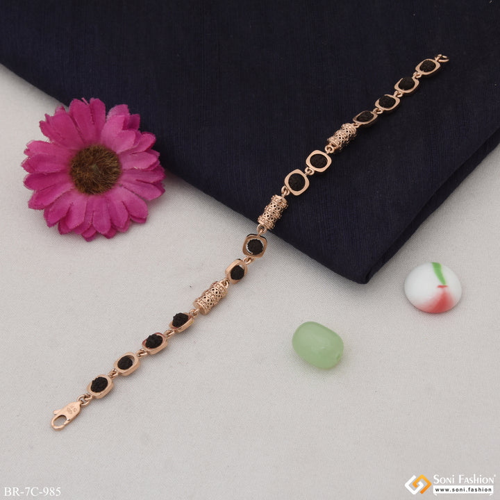 High-Quality Eye-Catching Design Rose Gold Rudraksha Bracelet for Men - Style C985
