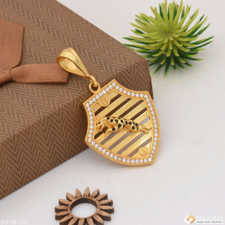 Jaguar With Diamond Extraordinary Design Gold Plated Pendant For Men - Style B735