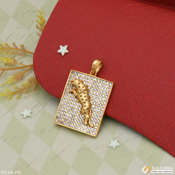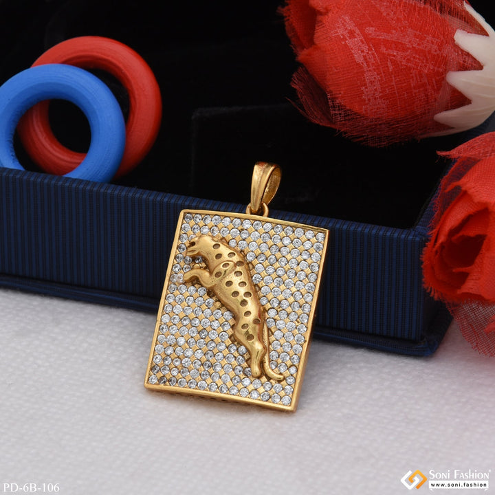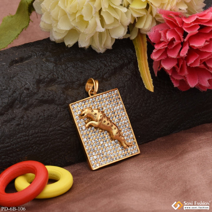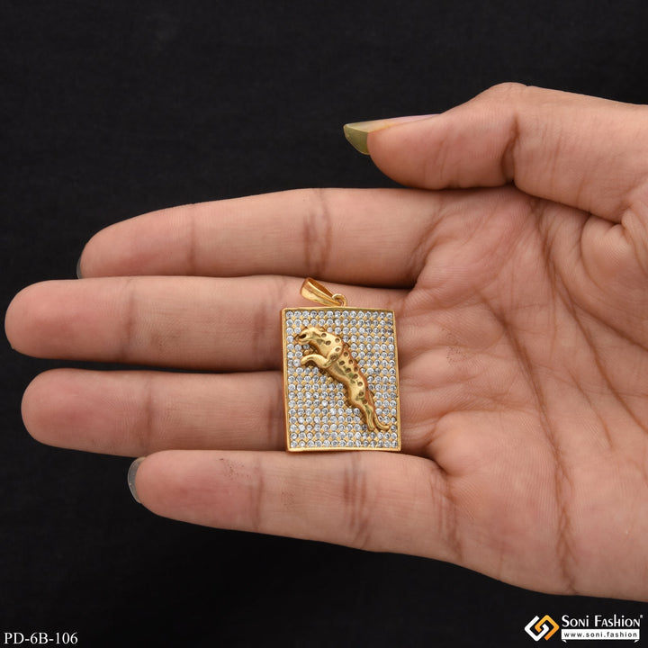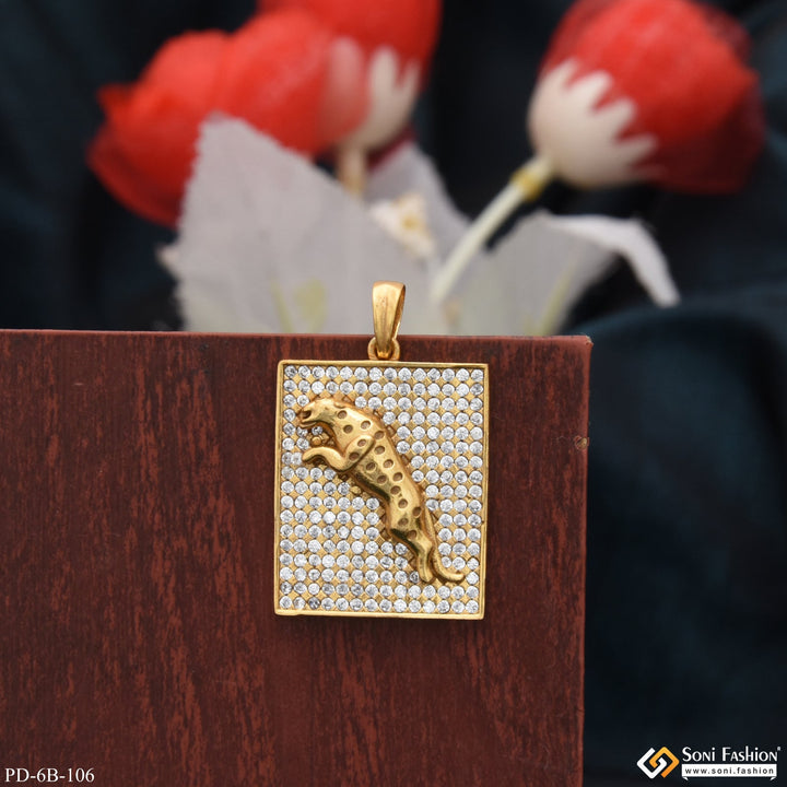 Jaguar With Diamond Antique Design Gold Plated Pendant For Men - Style B106