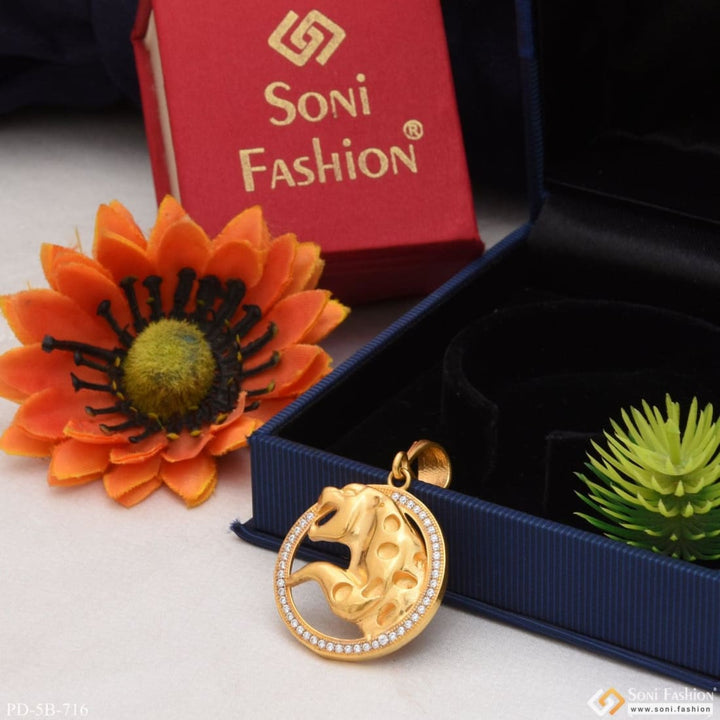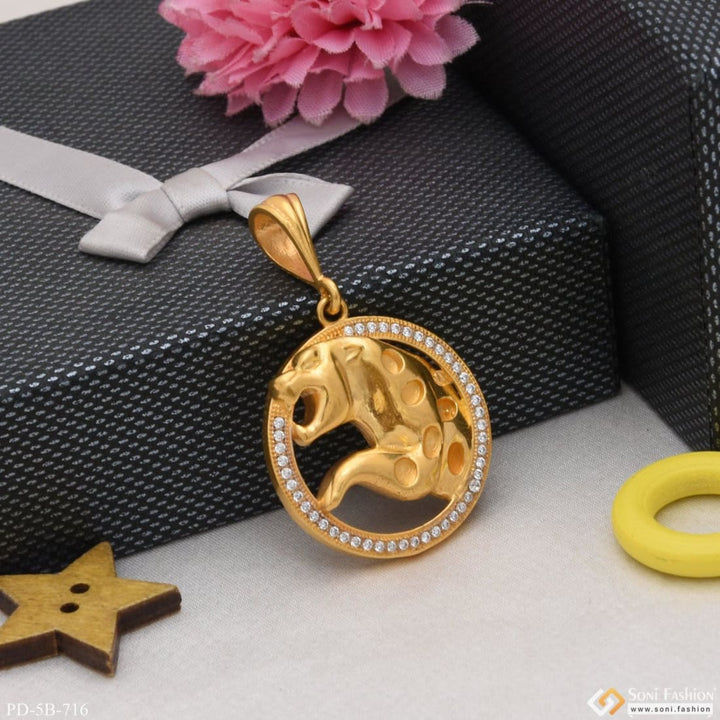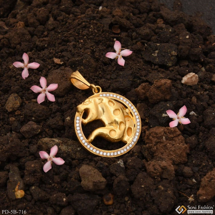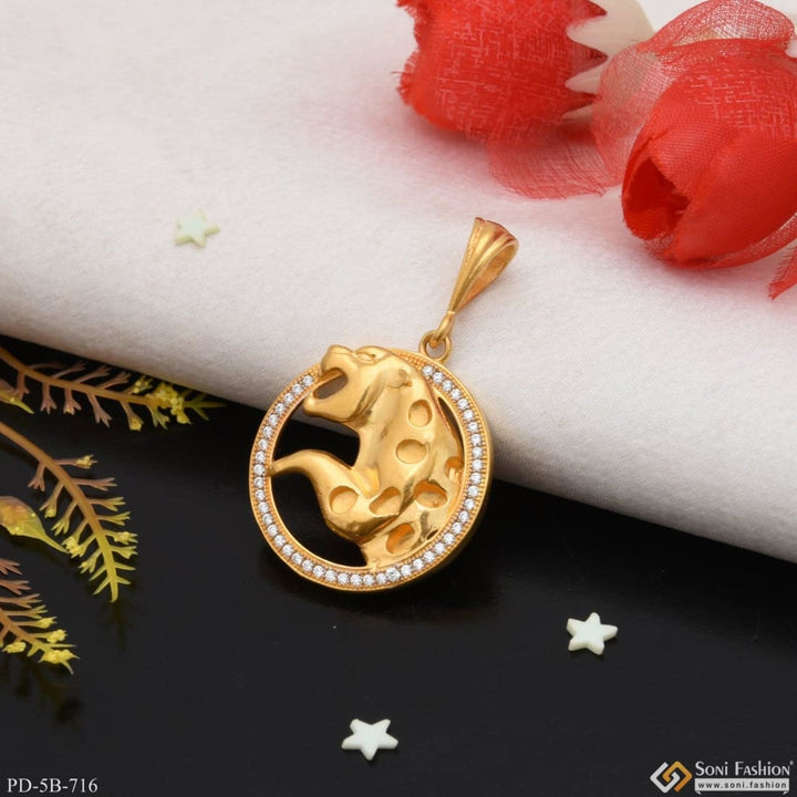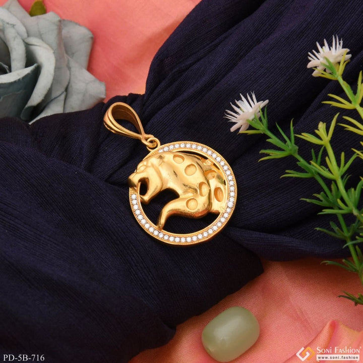 Jaguar With Diamond Fashionable Design Gold Plated Pendant For Men - Style B716