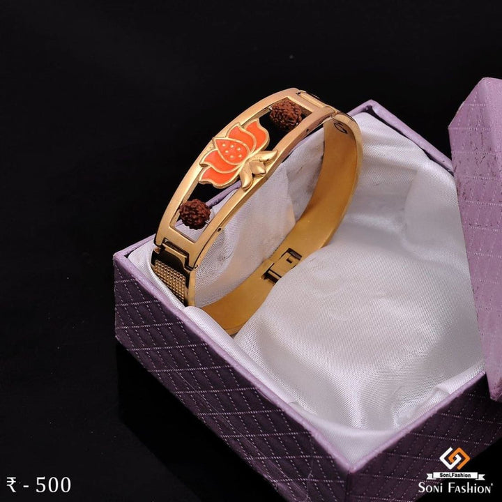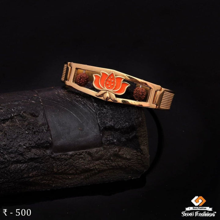 Kamal-Rudraksha Bracelet Kada Casual Design Gold Plated for Men - Style A021