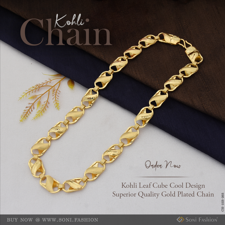 Kohli Leaf Cube Cool Design Superior Quality Gold Plated Chain For Men - Style B265