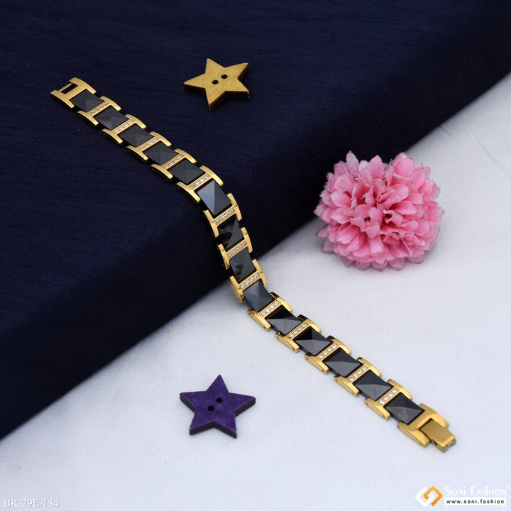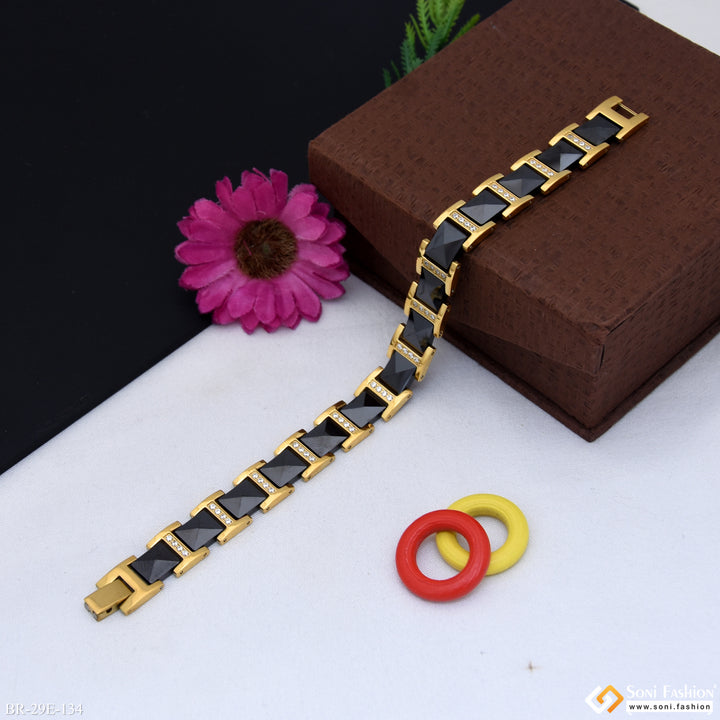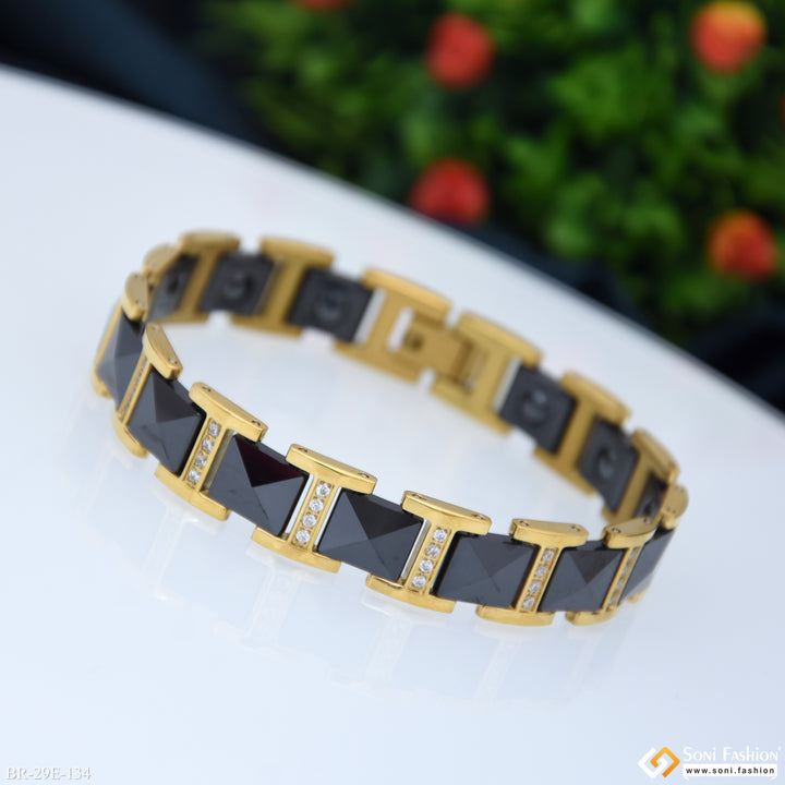 Latest Design Black & Golden Color Ceramic Bracelet for Men - Style E134
