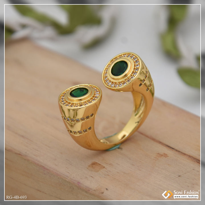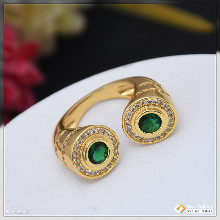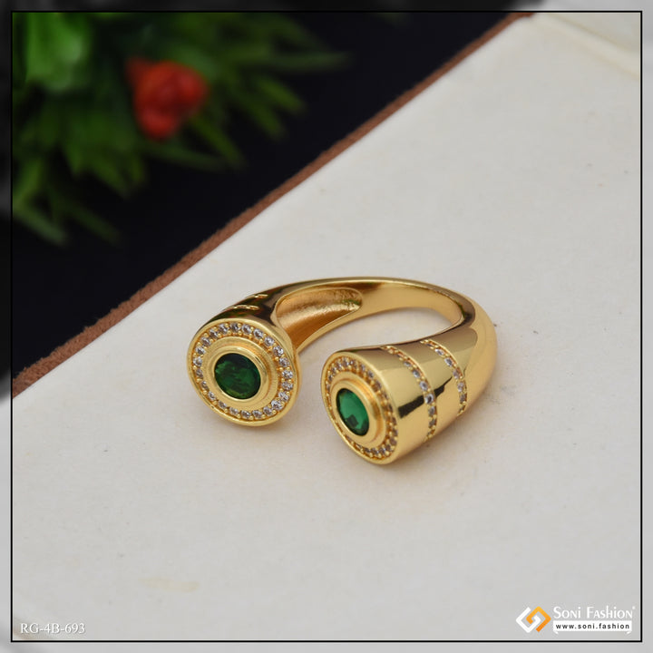 Elevate your style with this latest design gold-plated adjustable ring for men. Featuring a shining green and golden tone with brass construction and diamond-like accents, it combines hip hop flair with a plain yet striking look. The adjustable fit ensures comfort while highlighting your unique fashion sense. Perfect for adding a bold touch to any outfit.