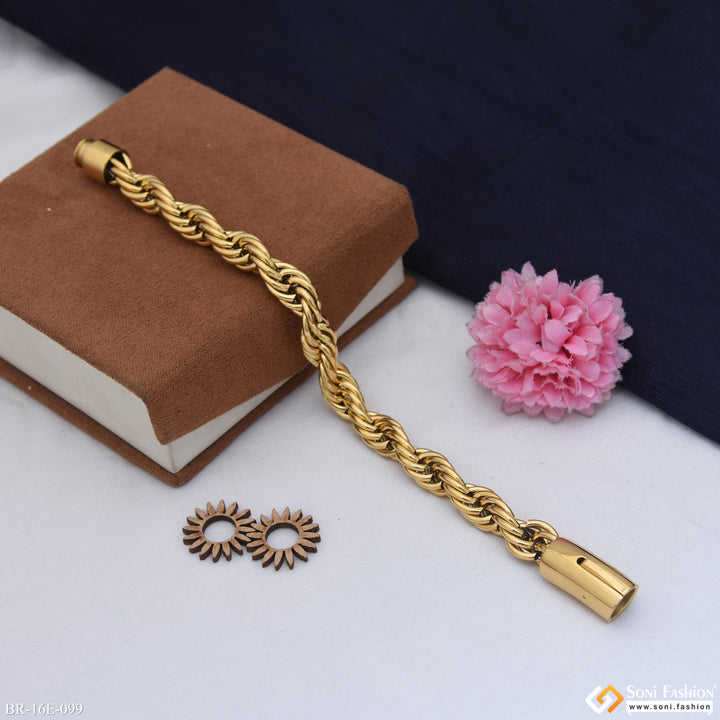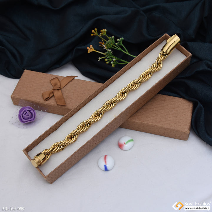 Elevate your style with this striking stainless steel twisted rope bracelet, designed for the modern man who appreciates bold accessories. Crafted from premium stainless steel with a lustrous golden plating, this...