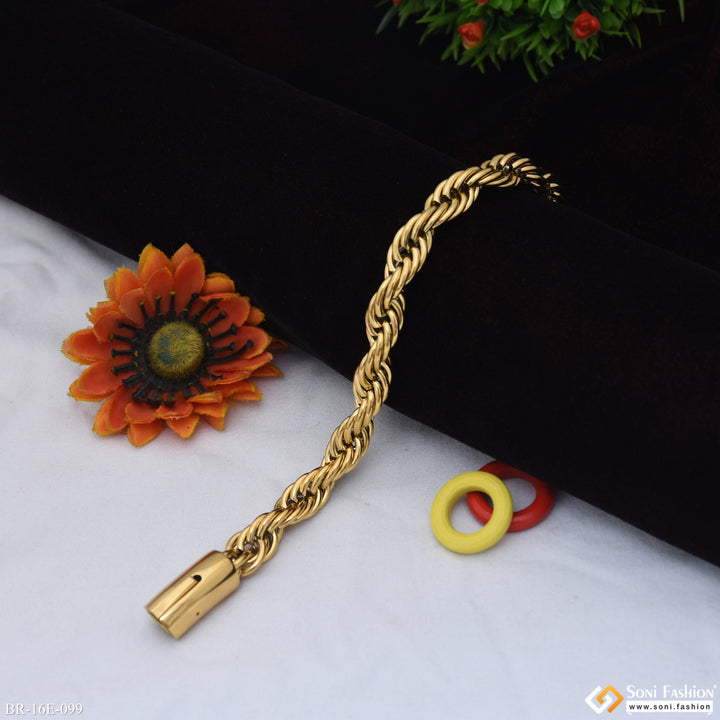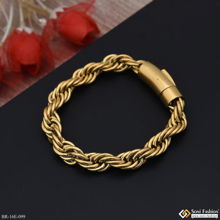 Elevate your style with this striking stainless steel twisted rope bracelet, designed for the modern man who appreciates bold accessories. Crafted from premium stainless steel with a lustrous golden plating, this bracelet features an eye-catching twisted pattern that catches light beautifully. Perfect for hip-hop enthusiasts and fashion-forward individuals, it combines durability with contemporary flair.