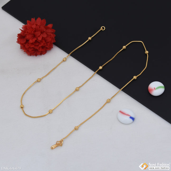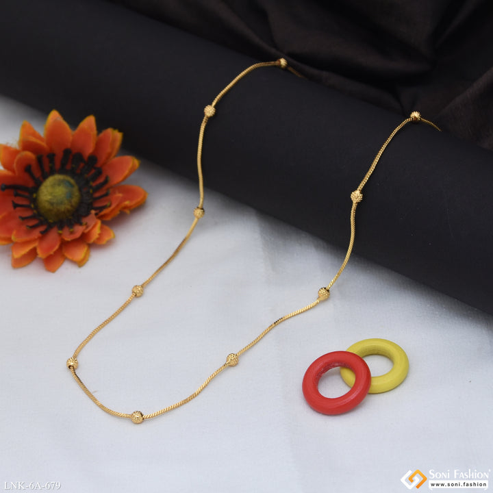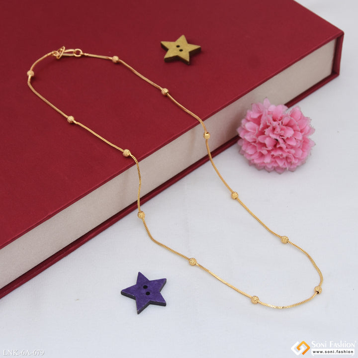 Elevate your look with this new style gold-plated chain for ladies. Crafted from durable brass with high-quality plating, it offers a shiny finish that complements any outfit. Designed to follow the latest trends, this stylish chain adds a touch of elegance and sophistication to your jewelry collection. Perfect for everyday wear or special occasions.