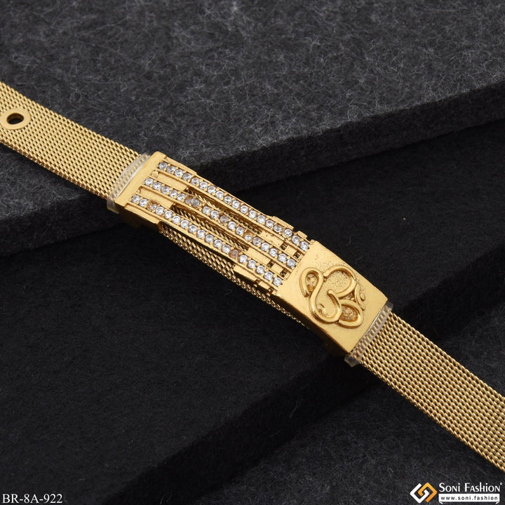 Om In Line Design With Diamond Gold Plated Stainless Steel Bracelet For Men - Style A922