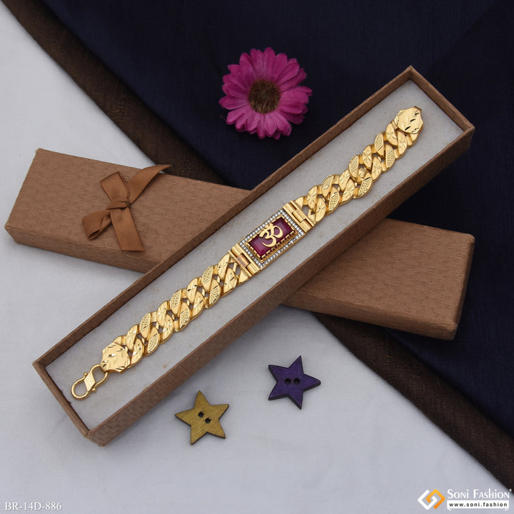 Om Latest Design Gold Plated Pokal Bracelet for Men - Style D886