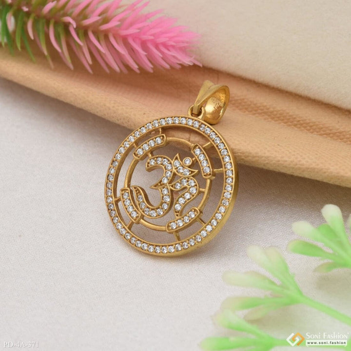 Om With Diamond Casual Design Gold Plated Pendant For Men - Style A371